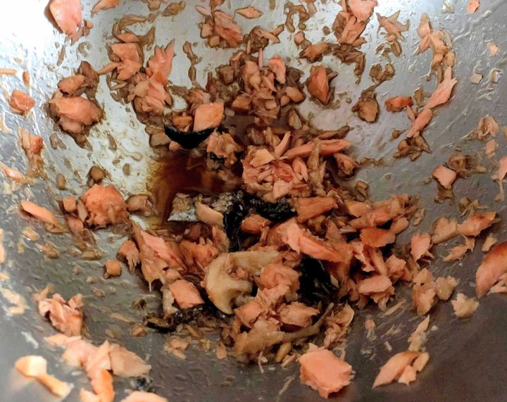 (3)(2)をほぐし、調味料を全て混ぜ合わせる。