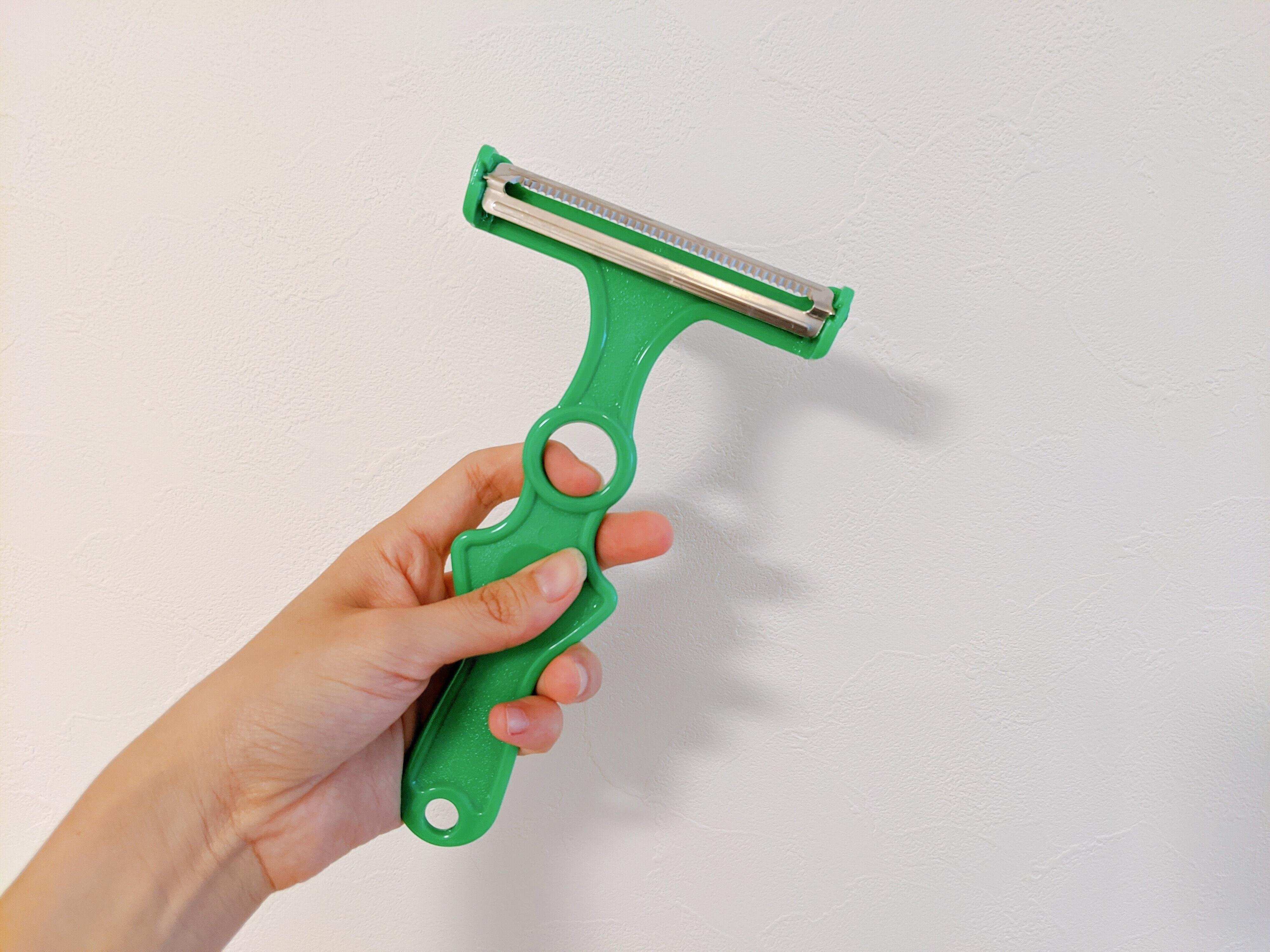 個人的にはスライサーよりこのピーラーの方がやりやすくて好きでした。周りには多少飛び散るので、大きめのボウルの上で使うのがおすすめです。