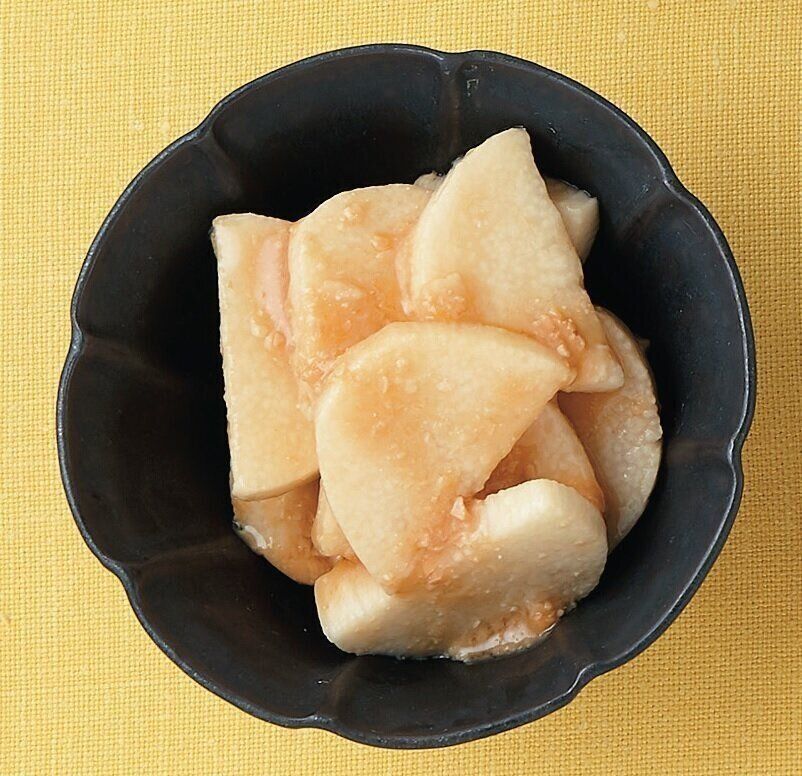 皮をむき、厚さ1cmの半月切り。