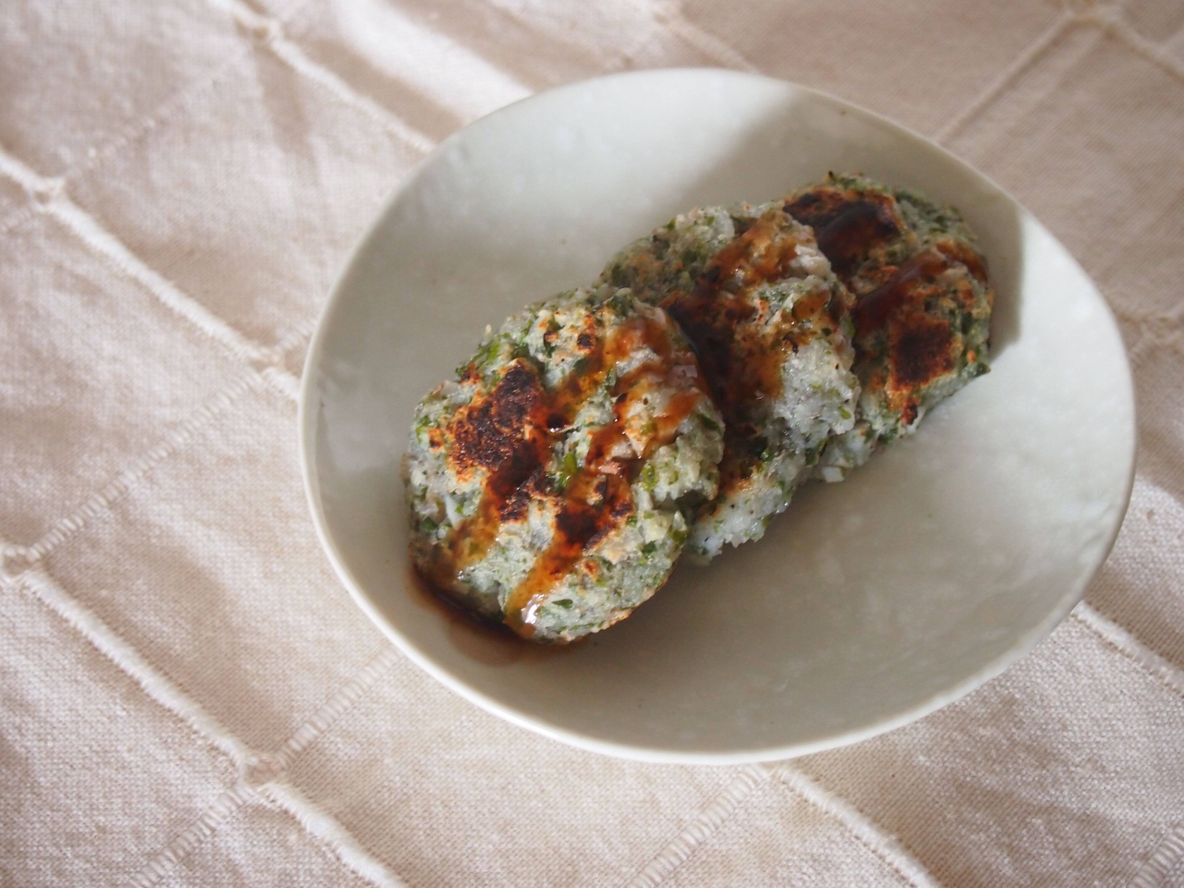 (2) 「おろす用」のレンコンは皮ごとおろす。「刻む用」は皮ごと粗みじん切りにする。
