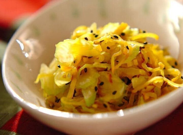 白菜を大量消費したいときにおすすめのレシピです。材料を混ぜるだけで完成するので、あと一品欲しいときにもおすすめ。加熱はしないので、白菜の甘みを楽しむことができますよ。