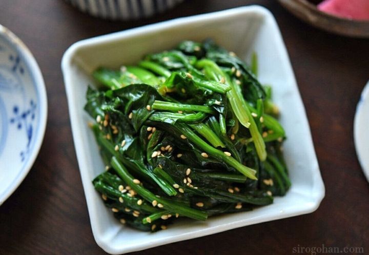 「ごま油香る小松菜のナムル」は、子どもも喜ぶおいしさの一品。小松菜をゆでて、ごま油などの調味料を和えてつくります。ごま油の香りだけでご飯が進みますよ。一度食べたら病みつきになること間違いなしです。