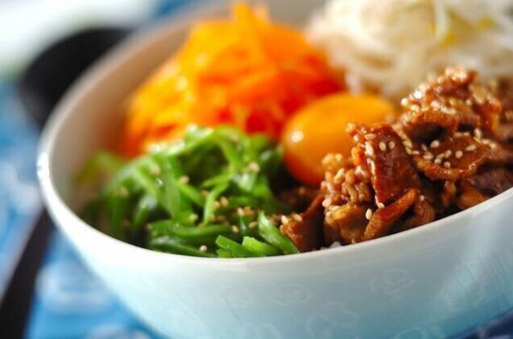 プロが教える本格的なナムルが楽しめる、牛肉とナムルのやみつき丼。具材それぞれに味つけをすることで、味がしっかりと染み込んでおいしさがアップします。いそがしい日も、一皿で肉と野菜を両方楽しめるのがうれしいですね。牛肉と野菜に卵黄を絡めて召し上がれ!