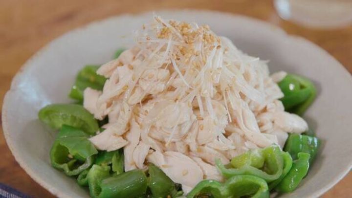 熱々のごま油をまわしかけた、香ばしい香りが食欲をそそる一品です。ピーマンは食感を活かせるよう大きめにカットして電子レンジで加熱することで、シャキッとした食感を残せます。