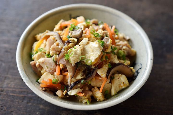 干し椎茸の戻し汁をベースに、コクのあるごま油の香りが混ざり合い、食欲をそそります。お豆腐の下ごしらえが必要ですが、1つの鍋だけで完成させることができるので、洗いものが少ないのもうれしいですね。
