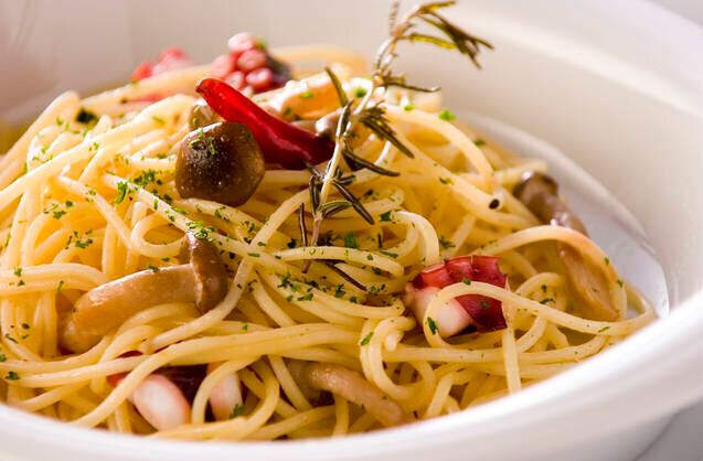 食感・風味も楽しめそうな、しめじとタコのパスタ。きのこと魚介のうま味にニンニクのおいしさがプラスされて、グングン食が進みそうです。赤唐辛子のカットの仕方で辛味を調節するのがコツです。