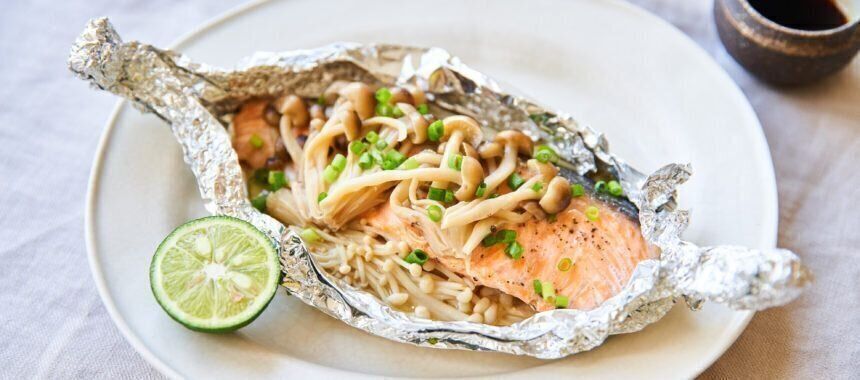 フライパンで簡単につくれるホイル焼きです。お好きなきのこをたっぷり入れて包み焼きにするだけ。ホイルを開けたときのきのことバターしょうゆの香りがたまりません。