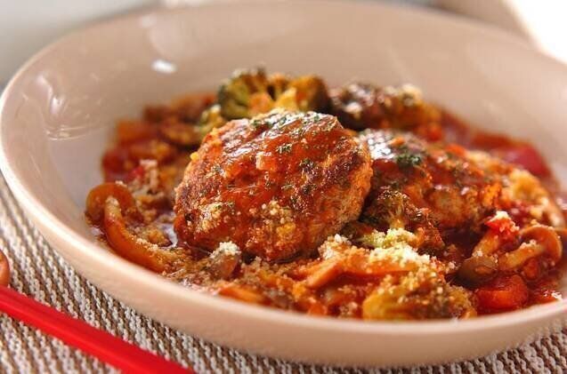 トマトソースと一緒に煮込む、絶品簡単失敗なし!煮込みハンバーグのレシピです。ジューシーなハンバーグは、しめじとの相性ばっちり。こちらは煮込みハンバーグなので、生焼けの心配もなく、手軽に作りやすいのがうれしいところです。