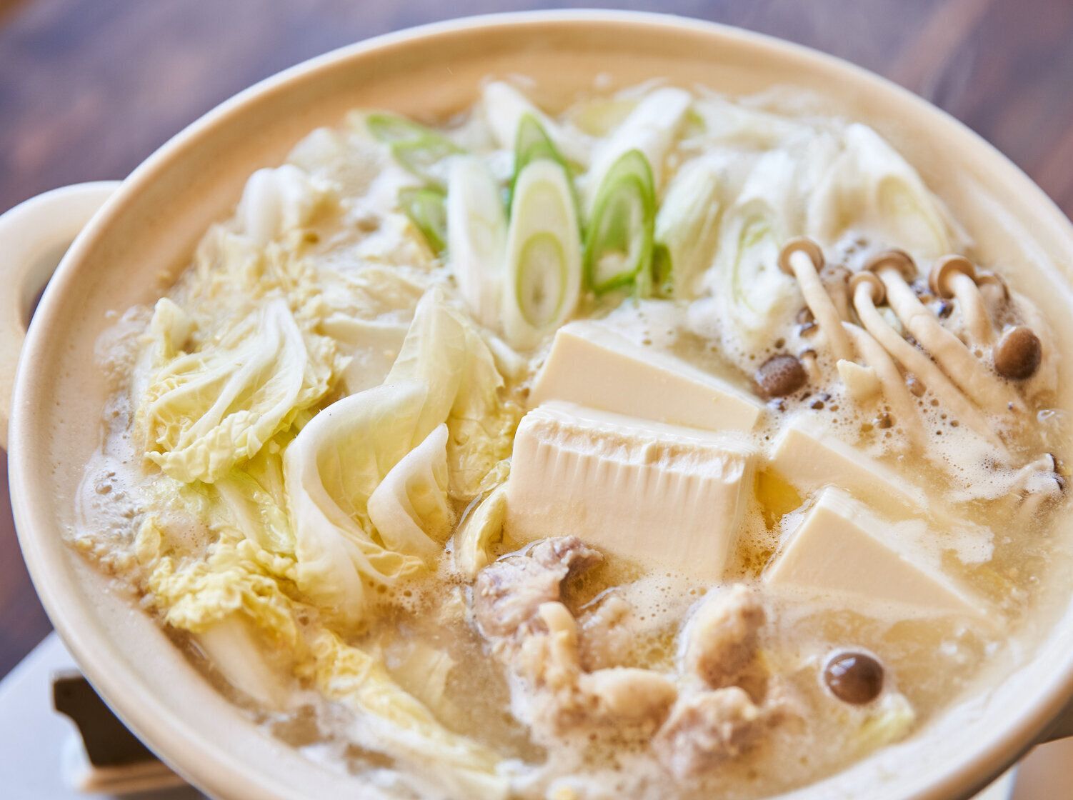 発酵パワーでエネルギーが湧いてきそうな、しょうがたっぷり、温活発酵鍋。しめじは1袋、そのほか野菜やお肉、豆腐も入って、バランスよく食べやすいのもポイントです。お好みの調味料や薬味を添えてもおいしそうですね。