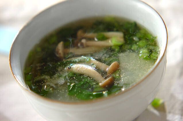 カブやしめじを使ったスープのレシピ。カブの葉も使って彩り豊かに仕上げます!和を感じる味つけで、和食メニューに添えるのにぴったり。手軽に栄養を補給したいときにもよさそうですね。