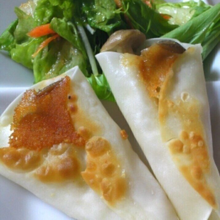 石づきをとりほぐしたしめじを、ぎょうざの皮で巻いたアレンジレシピです。フライパン1つでつくれるので片づけも簡単。オリーブオイルでよく熱してから焼くとパリパリ食感に仕上がりますよ。