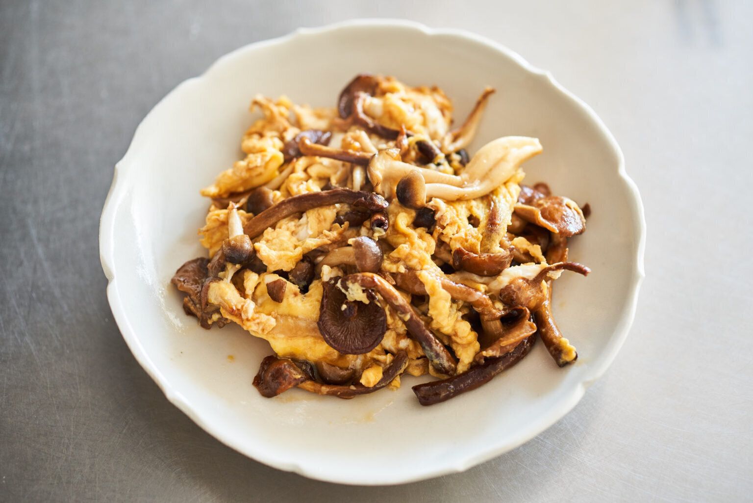 相性ばっちりの、きのことしょうゆを使ったスクランブルエッグのレシピ。「好みのきのこ」を使用してOKの