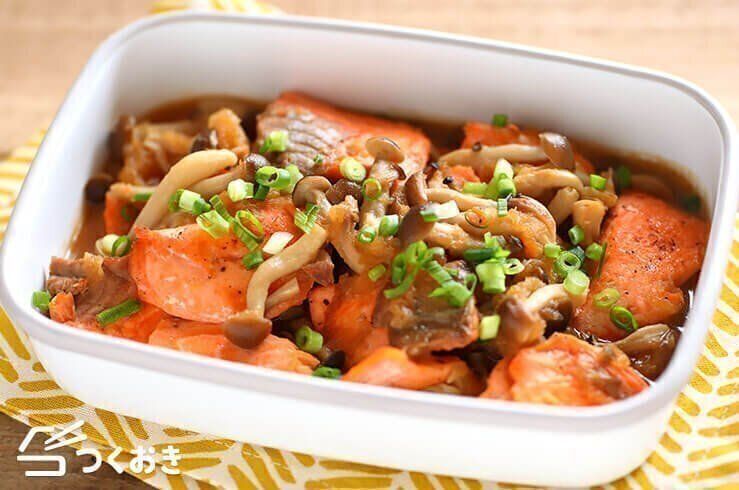 やわらかい鮭と弾力のあるしめじの、食感の違いが楽しい鮭としめじのみぞれ煮。大根おろしで具材が包まれることで、煮汁に溶け込んだ具材のうま味や風味も全体によくからんでおいしいですよ。冷蔵も冷凍もできるので、常備菜にするのにぴったりですね。