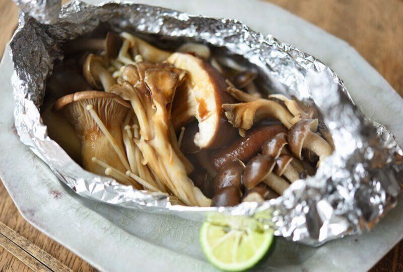 旬の味覚がたっぷりと詰まったホイル焼きです。きのこのほかにもお好みで好きな野菜や魚にアレンジも可能。ホイル焼きは包んで焼くのできのこの香りも逃さずおすすめです。