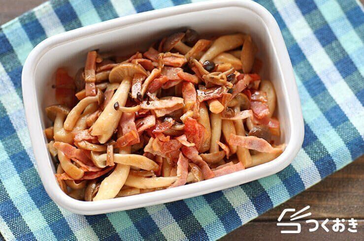 かつお節の風味が効いたこんにゃくとしめじの甘辛煮です。こんにゃくはそのまま使うとえぐみが残るため、必ず下茹でしてから使いましょう!しっかり味が染み込んだおかずは、お弁当の一品としても活躍します。