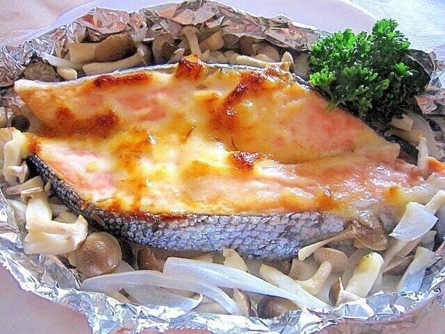 鮭のホイル焼き☆新玉ねぎとしめじ入り