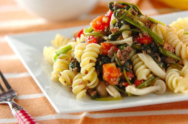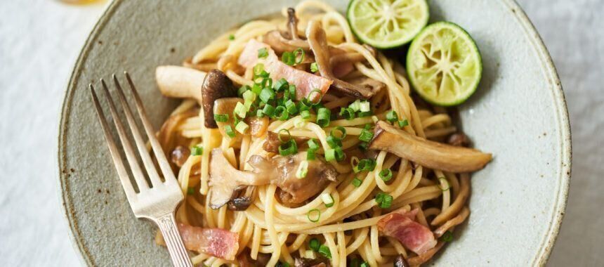 きのこのうま味としょうゆの香ばしさがたまらない一品です。太めのパスタでつくってしっかりと味を吸わせることがおいしくつくるポイントです。