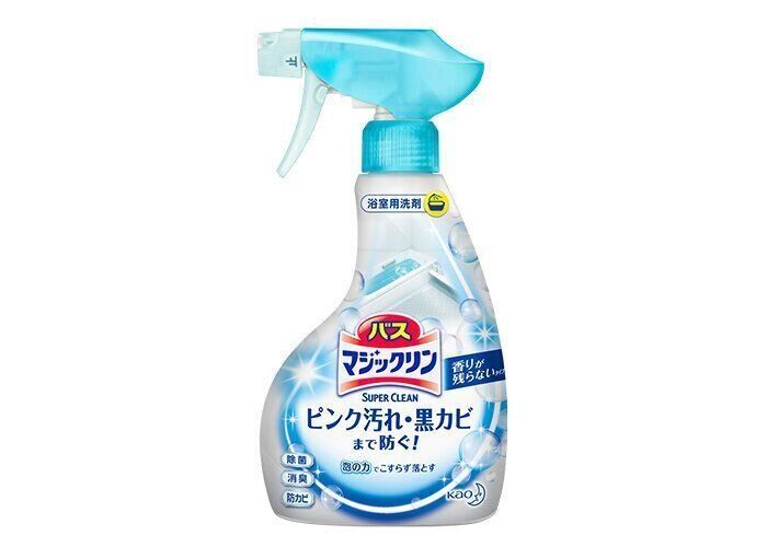 浴槽はもちろん、床や壁、洗面器、イスなどの湯アカ・石けんカスもスッキリ落とすお風呂用洗剤(洗面台掃除にもOK!)。中でも、泡の力でこすらず落とす※「泡立ちスプレーSUPER CLEAN」は、菌由来のヌメリやピンク汚れ、黒カビも防いで清潔をキープ。ほかにも、パワフル消臭技術で床や壁についたニオイを落とす「デオクリア」などラインアップも充実しています。