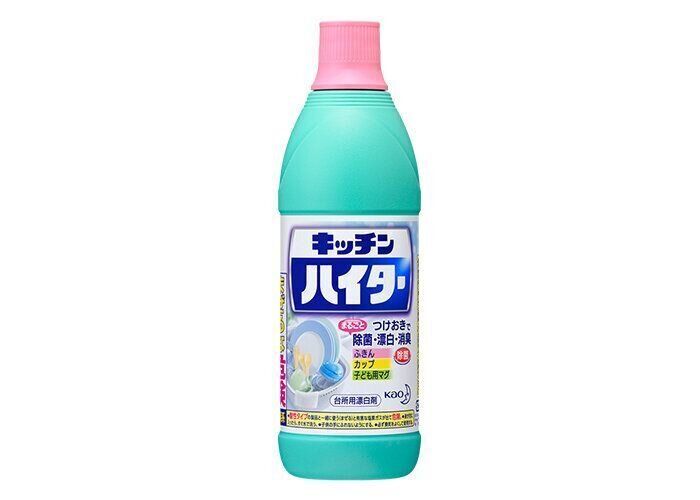 食器用洗剤で取りきれないカップや湯飲みの黒ずみ・茶渋などの漂白といったら「キッチンハイター」。5Lの水にキャップ約2杯(キャップ1杯は25ml)をうすめて、約30分ほどつけおきしたあと、水ですすげばOK。もちろん、雑菌やニオイの気になるふきんや台ふきなどの除菌※・消臭にもお役立ち。
