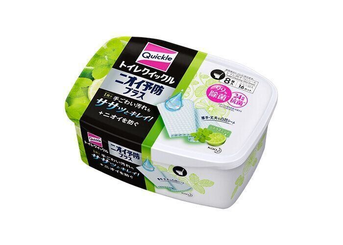 使ったあとはトイレに流すだけの手軽さで、今やトイレ掃除の必需品となっているトイレ用おそうじシート。「トイレクイックル」は、厚手で丈夫なので掃除の途中でやぶれたり、汚れが手についたりといった心配がありません。凸凹シートには洗浄液がたっぷりと含まれ、最後まで乾くことなく、床から便器まで汚れをしっかり落とすことができます。「トイレクイックル ニオイ予防プラス」は、特殊技術ニオイプロテクト成分配合で尿臭の発生を防ぎます。除菌・抗菌※1に加え、ウイルス除去※2効果も。