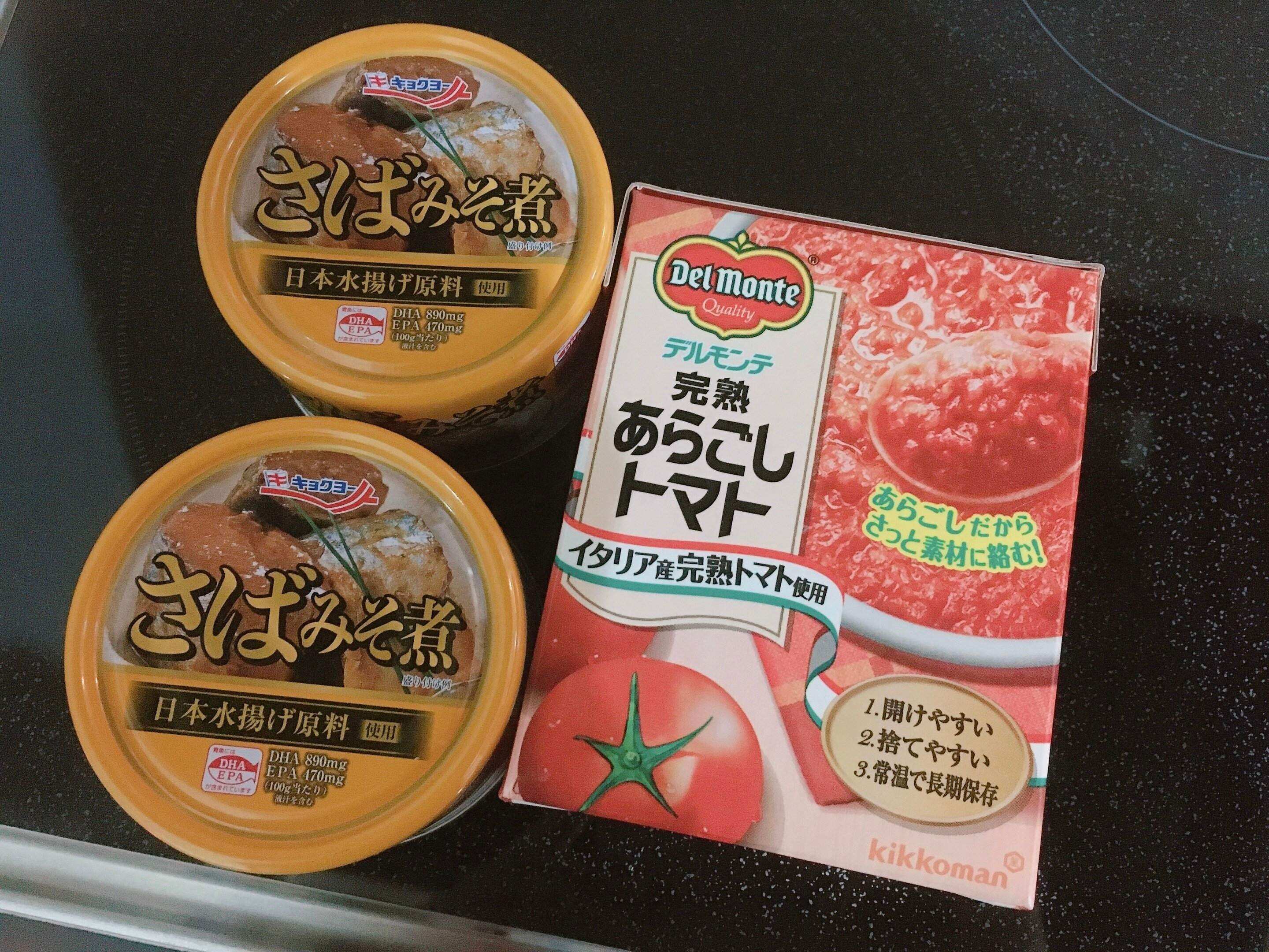 サバ味噌煮缶+カットトマト