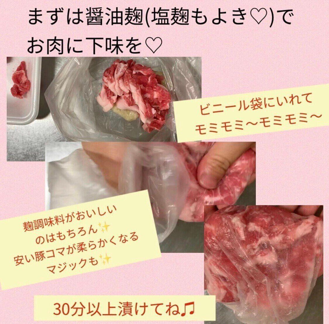 1.醤油麹でしっかり下味をつけて、お肉も柔らかく変身させましょう!