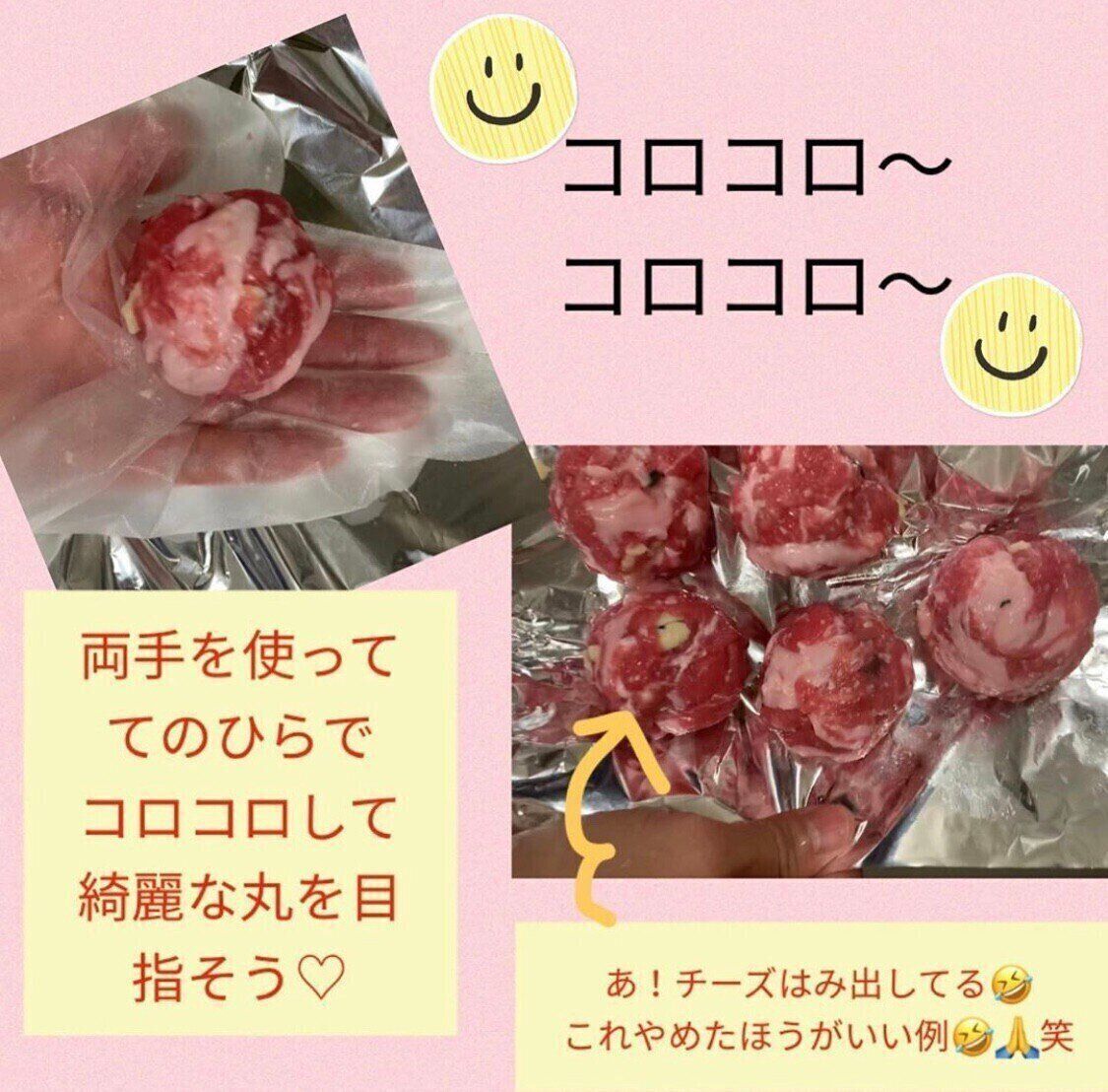 豚肉を繋げながら手のひらに広げて、2のまとめた具材をのせて、見えないように包みます!