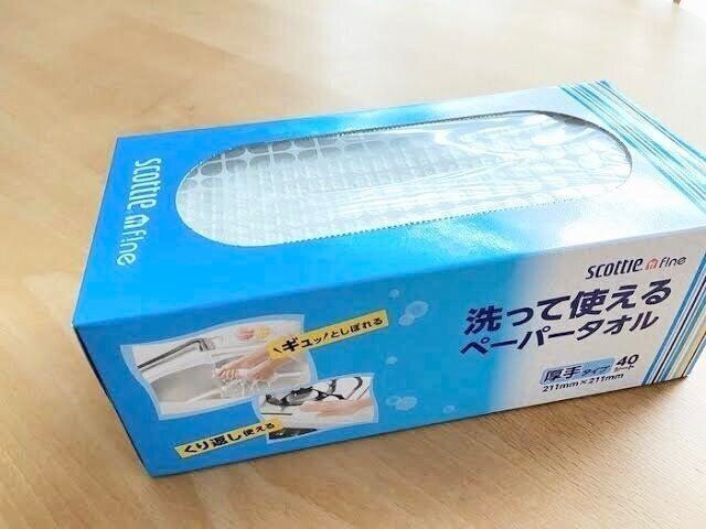 布のように丈夫だから濡らしてぎゅっと絞ることのできるペーパータオル。我が家では台拭きに使っています。1回使い捨てじゃないので経済的かつ台布巾の管理と洗濯の手間が省けるので便利。毎朝のキッチンリセットの最後にシンクの排水口を拭き取って捨てています。ロールタイプもあるけれど、取り出しやすくストックしやすいサイズのボックスタイプがお気に入り。