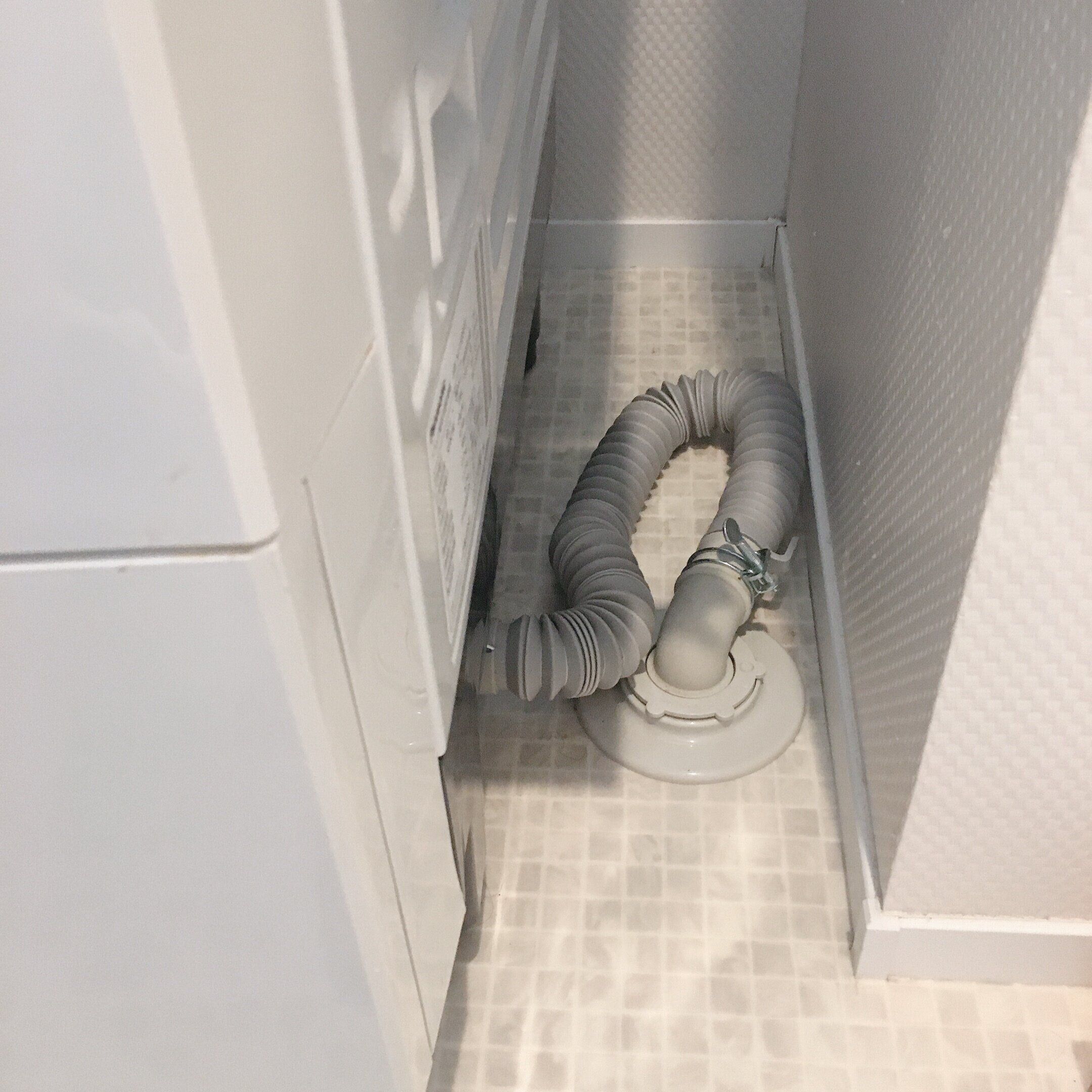 ぴったりのサイズで作ったので、排水ホースにホコリがかぶりにくくなりました。