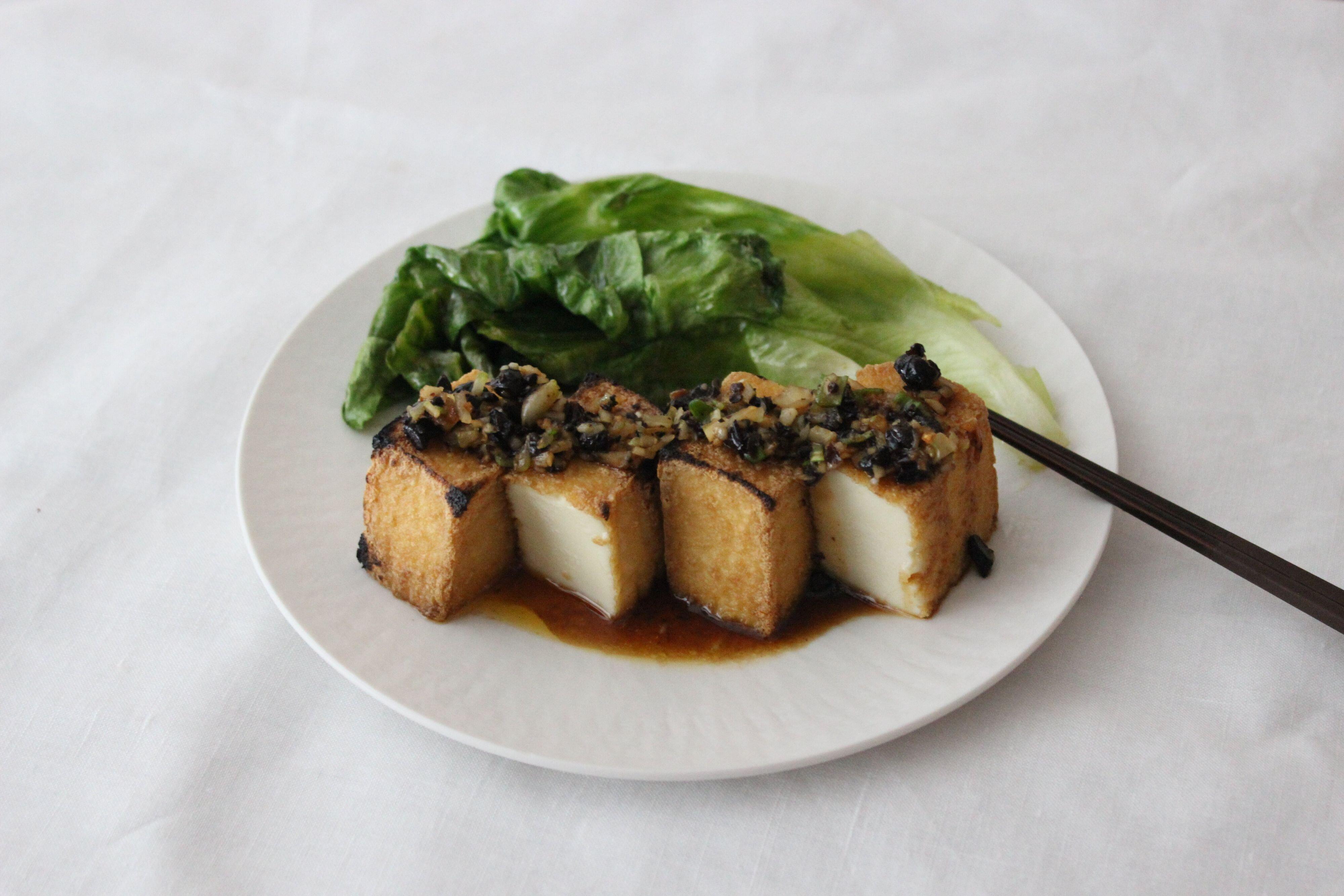 こんがりと焼いた厚揚げに、豆鼓を使ってソースを作り、かけてみました。