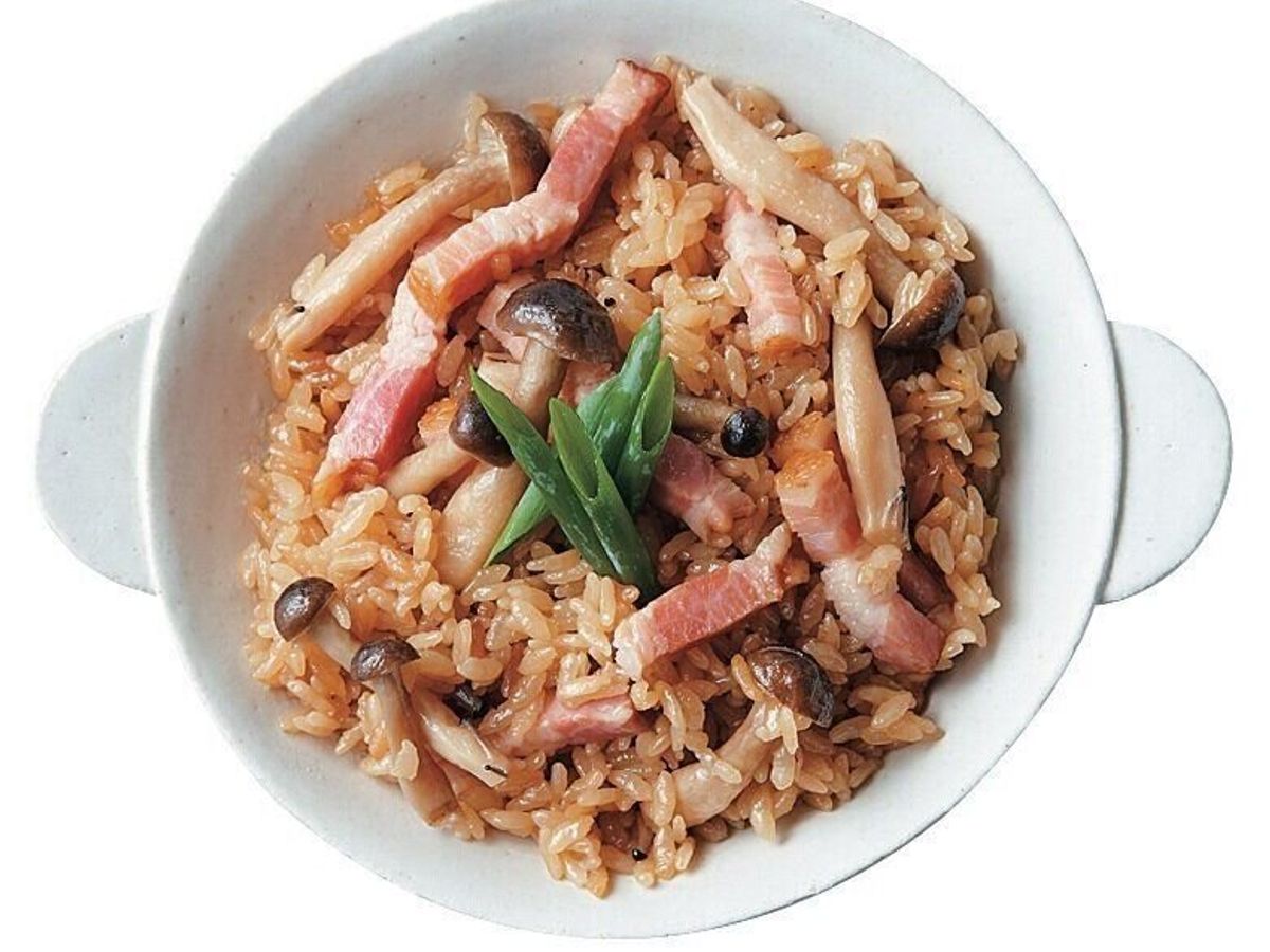 『サンキュ!』2020年11月号の「素材2つで大満足!秋の炊き込みご飯 混ぜご飯 具だくさんみそ汁」よりベーコンきのこご飯をご紹介します。