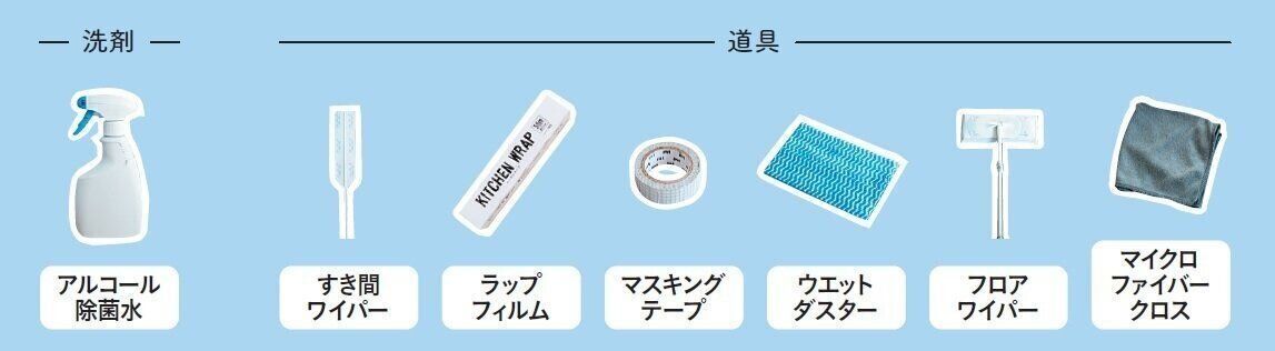 すき間ワイパーは、100円ショップで購入可能。庫内の拭き掃除には衛生的で安全なアルコール除菌水を使うのが◎。