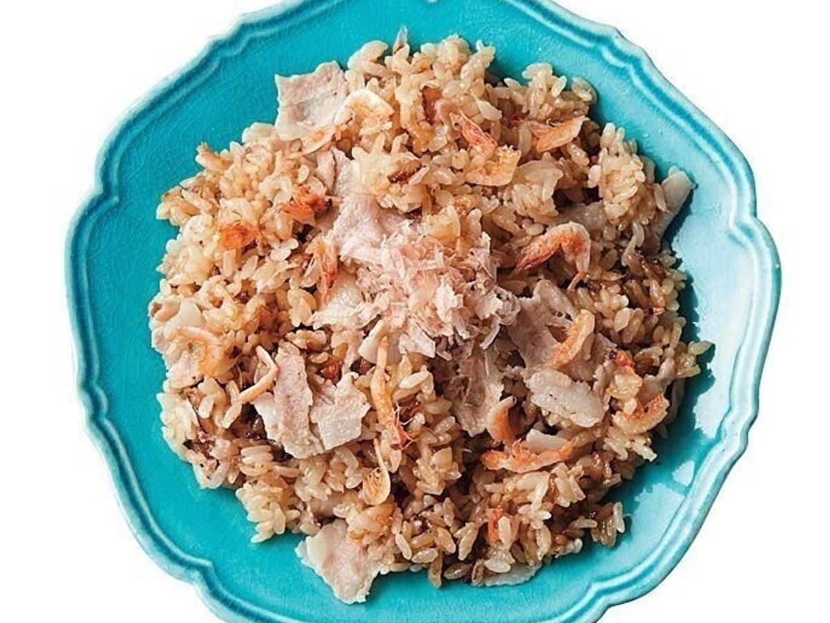 『サンキュ!』2020年11月号の「素材2つで大満足!秋の炊き込みご飯 混ぜご飯 具だくさんみそ汁」より豚バラ桜えびうまみ炊き込みご飯をご紹介します。