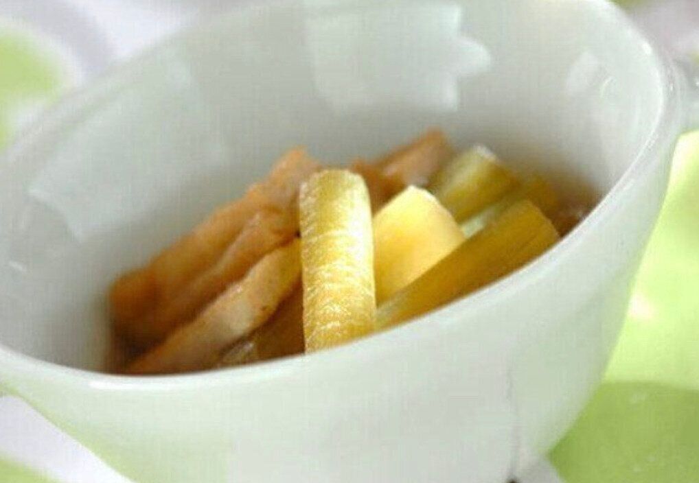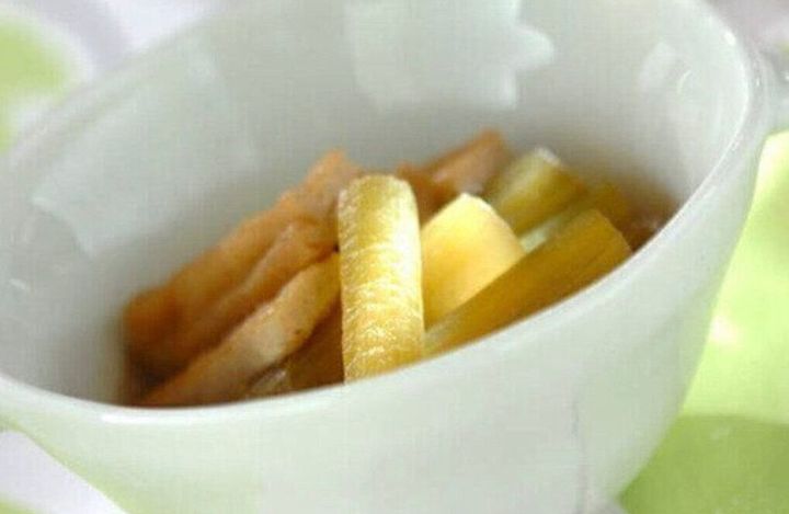 フキと揚げ天をつかった煮物のレシピです。揚げ天は油抜きをしてから具材として加えることで、揚げ天の旨味がお出汁に溶け込み、フキとの相性もぴったりになります。