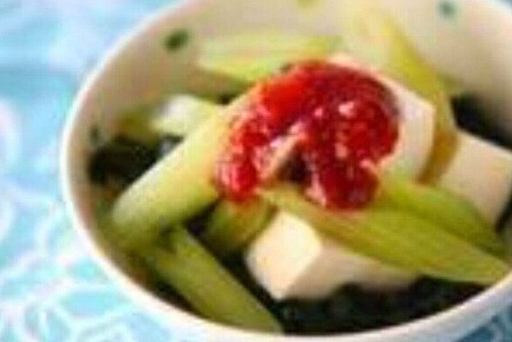 ふきをサラダとして食べられる、和風の副菜レシピです。豆腐とわかめもいっしょに盛りつけるので、ボリュームもバッチリ。梅ドレッシングでさっぱりとしつつ、食べ応えもしっかり感じられます。
