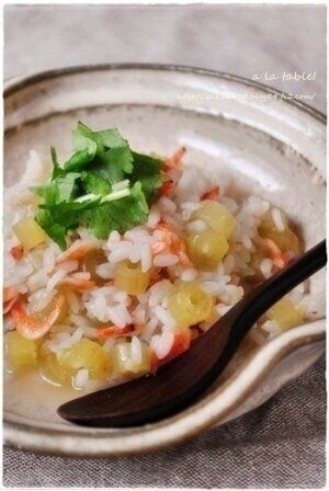 和風ベースのだしにふきやにんじん、お米と一緒に炊いたレシピです。もち米はもちもち食感を与えて美味しいですが、お米と比べてカロリーが高いです!混ぜる場合は、もち米を少なくして炊きましょう。