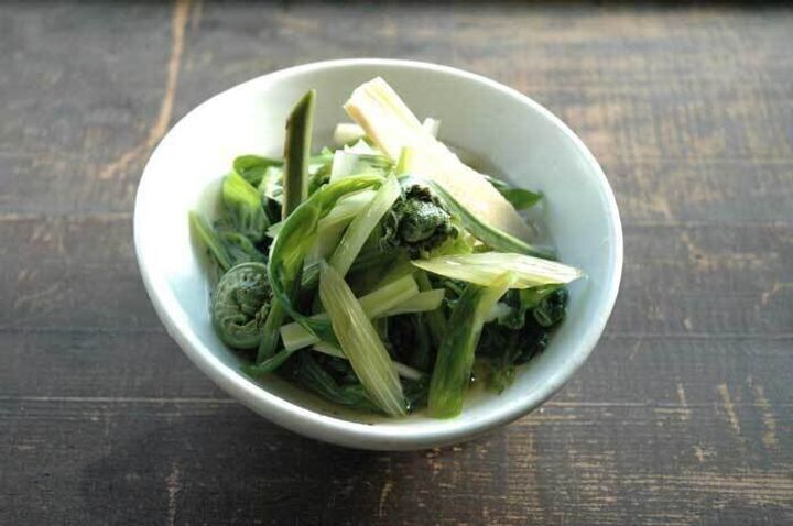 こちらの山菜のお浸しには、たけのこ、ふき、せり、こごみ、うるいと、春を感じられる食材がたっぷり入っています。どれもスーパーなどで手に入りやすい材料なので、気軽につくれそうですね。
