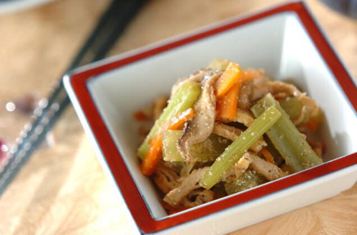 ふきのきんぴらに豚バラ肉をプラスすることで、豚肉の旨味をたっぷり吸った絶品の一品になります。炊き立てのご飯やお酒のおつまみにもぴったりです。