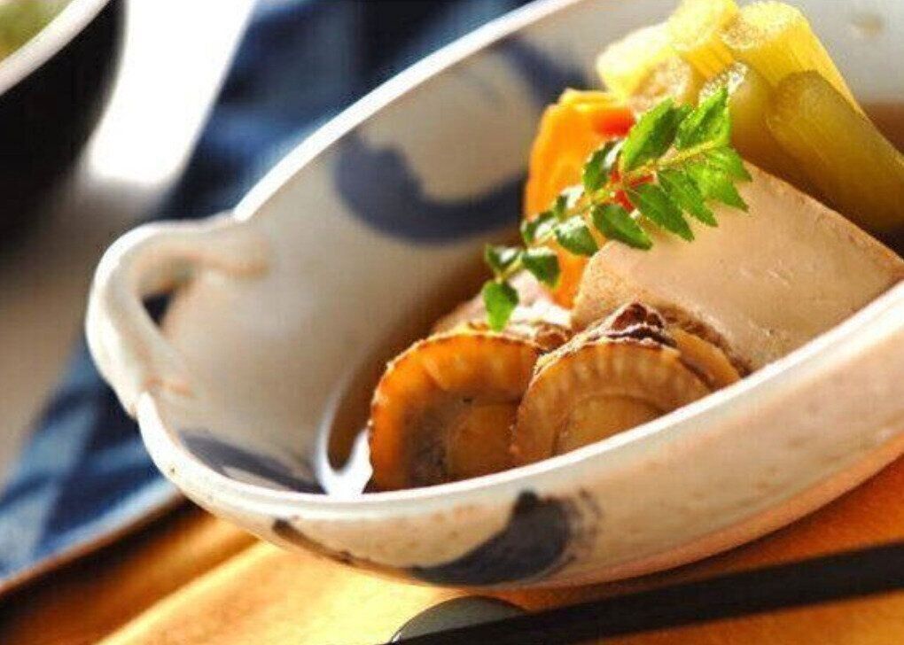 少し甘めに味つけした、ホタテとふきの煮物は、旨味たっぷりで白米が進むこと間違いなし。ふっくらぷりぷりのホタテから出る旨味を、ふきがしっかりと吸い込むので、口に入れた瞬間、旨味があふれ出ます。