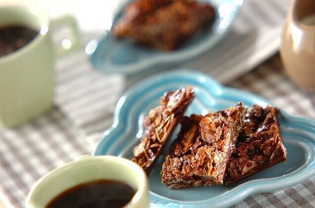 オートミールをチョコレートでコーティングして、バナナチップを加えたヘルシーなおやつレシピ。ドライフルーツやハチミツのナチュラルな甘さが、オートミールによく合います。寒い日には、ホットミルクをかけて食べるのも◎。