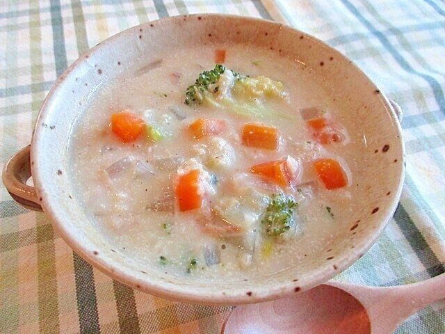オートミールとツナと野菜のとろとろ豆乳スープ♪