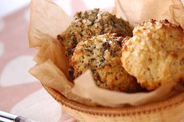 こちらは、干し柿やオートミール、スライスアーモンドなどを混ぜ込んだドロップクッキー。さまざまな食感と風味のハーモニーを楽しめます。材料を混ぜて焼くだけなので簡単ですよ。