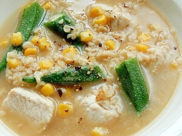 野菜とチキンで栄養たっぷり!オートミールのミルク粥
