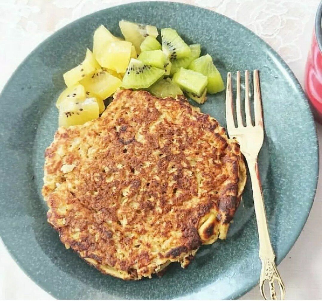 小麦粉を使わず、オートミールやバナナなどを使用したパンケーキ。ボリューミーで、朝食やランチにもあいそうです。フルーツといっしょに盛りつけると、ぐっとおしゃれなプレートに。