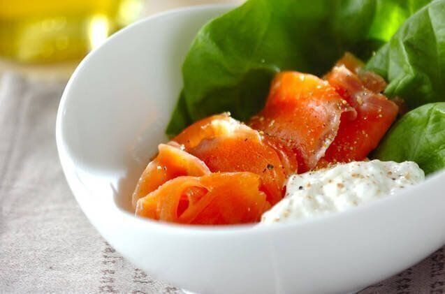 ヨーグルトの酸味に、塩気のあるスモークサーモンが絶妙にマッチ。ヨーグルトは、少し固くなるまでしっかり水切りをするのがおいしく仕上がるコツです。サラダ菜を加えれば、色合いもバツグン。