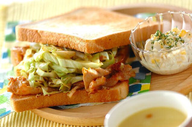 ショウガ焼きオープンサンドプレート