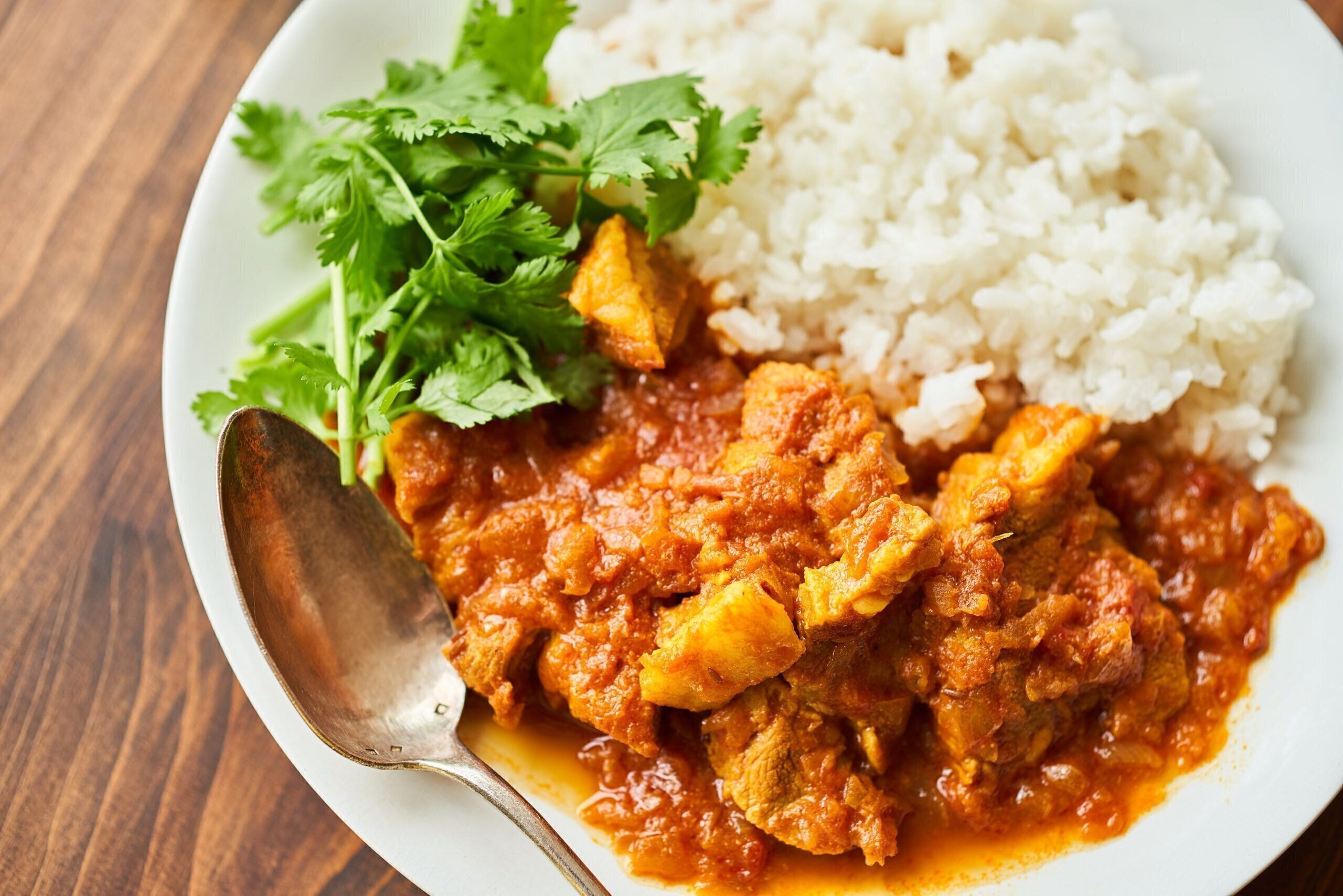 ヨーグルトとスパイスに豚肉を漬けて柔らかく仕上げた、ワンランク上のポークカレー。一晩漬けておくとぐっとおいしくなりますが、時間がなければ30分くらいでもOKですよ。