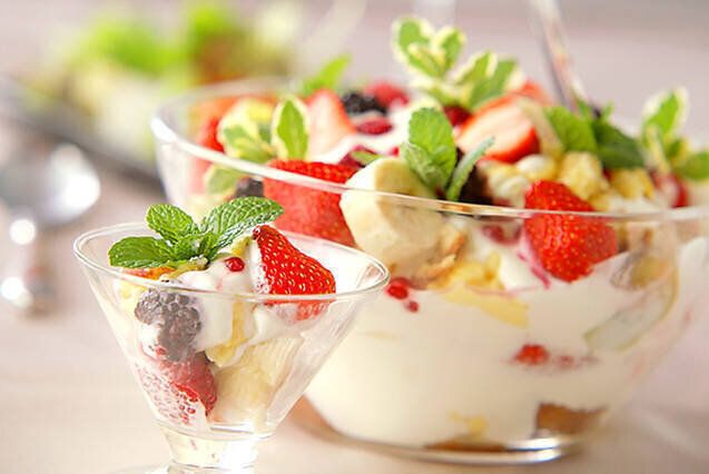 クリームチーズのような食感が楽しめる水切りヨーグルトを使ったパフェです。生クリームではなく、ヨーグルトを使うことでサッパリと食べられます!グラスは前もって冷やして置くと、冷たい状態が長持ちします。