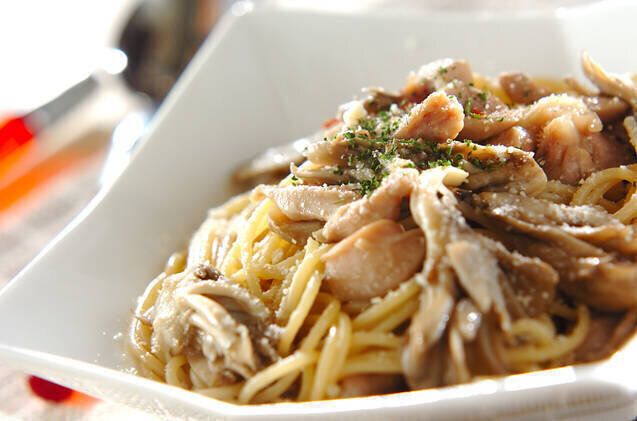 ニンニクの風味に、鶏もも肉やマイタケのボリューム感で、食べ応えのありそうなパスタのレシピです。マイタケの香りで、深みのある味わいに仕上がりそうですね!お好みで具材をプラスしてもおいしそうです。