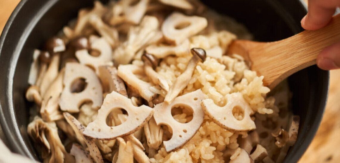 れんこんやしめじ、舞茸など、根菜ときのこをたっぷり使った炊き込みご飯のレシピ。みその風味が根菜やきのことぴったりマッチして、おかずとともに食が進む味わいに仕上がります。れんこんは皮ごと炊き込むと香りが増しますよ。お好みでユズの皮を入れてもおいしいです!